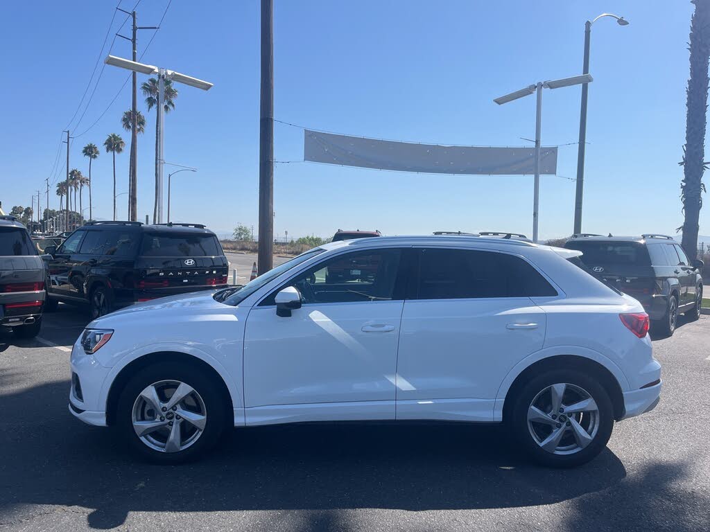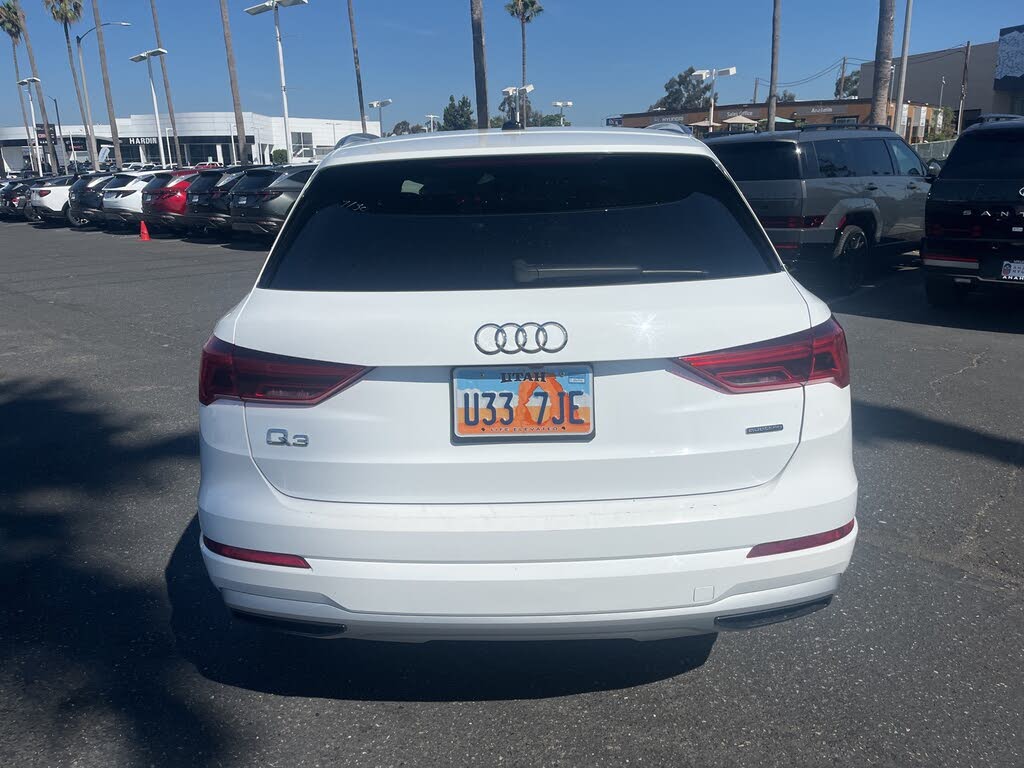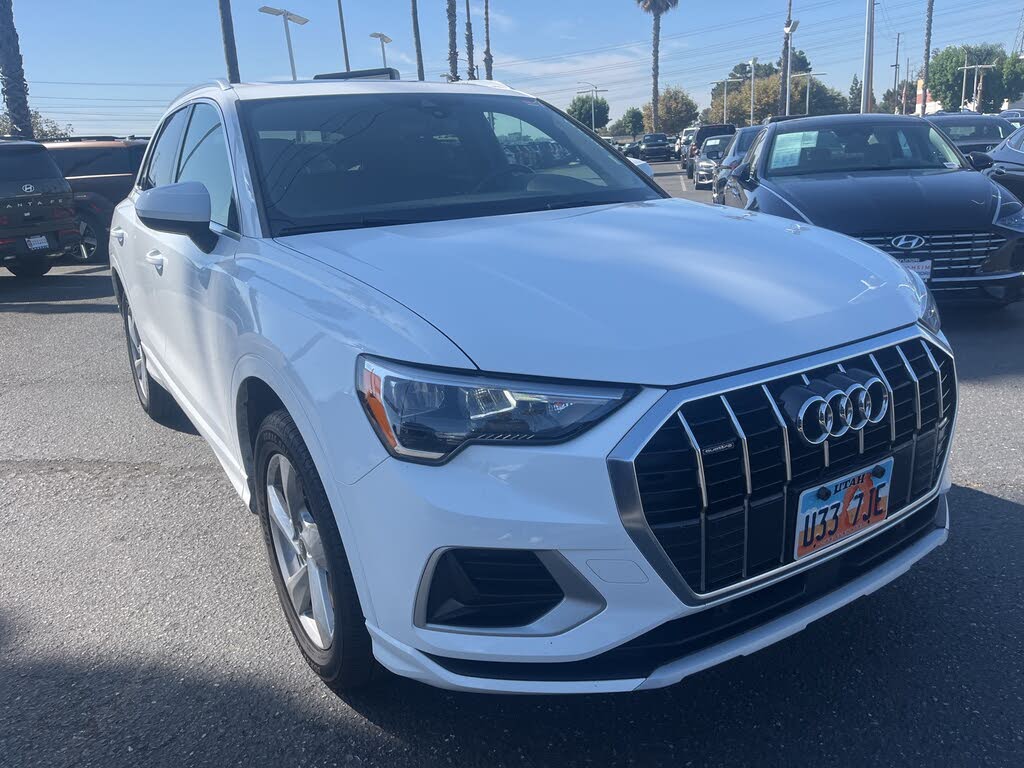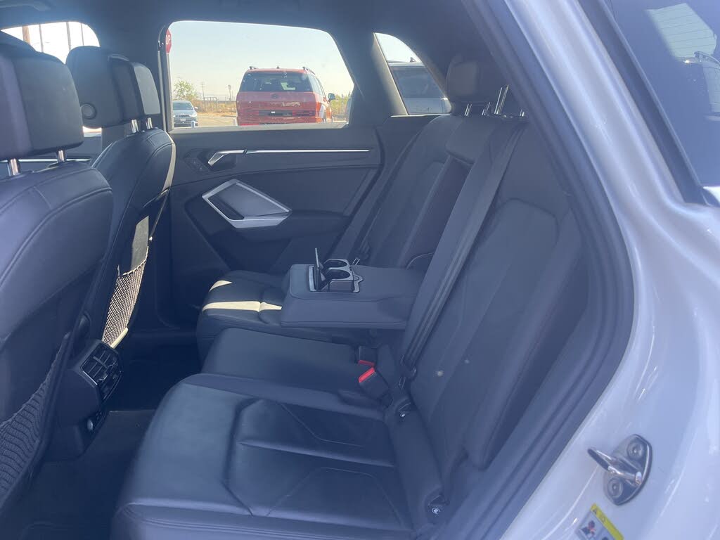 2021 Audi Q3 White 8-Speed Automatic with Tiptronic 2.0L 4-Cylinder TFSI ***BLUETOOTH WIRELESS / HANDS FREE***, ***USB PORTS***, ***MOONROOF / SUINROOF***, ***BACK UP CAMERA***, ***POWER DRIVER SEAT***, ***CLEAN CARFAX***, ***ONE OWNER CARFAX***, *****LEATHER****, Apple Car Play & Android Auto. 22/30 City/Highway MPG CARFAX One-Owner. Clean CARFAX. Financing available on approved credit. Trade-ins accepted. Subject to prior sale. All Pricing and Advertised Prices for any/all vehicles offered for sale does not include dealer installed accessories which can be purchased for an additional cost. No sales to Dealers, Brokers or Exporters. For out of state purchase, customers must be present to purchase. If shipping is required, dealership must facilitate; no exceptions. Please contact us for special Multi-Vehicle or Fleet pricing. Prices are plus government fees and taxes, any finance charges, $85 documentary fee, $33 electronic registration fee, any emission testing charge and $1.75 per new tire state tire fee. While every reasonable effort is made to ensure the accuracy of this information, we are not responsible for any errors or omissions contained on these pages. Images, prices, and options shown, including vehicle color, trim, options, pricing and other specifications are subject to availability, incentive offerings, current pricing and credit worthiness. Images are for illustrative purposes only.[!@@Additional Info@@!]10 Speakers,AM/FM radio,Radio data system,Radio: Audi Sound System,Air Conditioning,Automatic temperature control,Front dual zone A/C,Rear air conditioning,Rear window defroster,Power driver seat,Power steering,Power windows,Remote keyless entry,Steering wheel mounted audio controls,Four wheel independent suspension,Speed-sensing steering,Traction control,4-Wheel Disc Brakes,ABS brakes,Dual front impact airbags,Dual front side impact airbags,Front anti-roll bar,Low tire pressure warning,Occupant sensing airbag,Overhead airbag,Rear anti-roll bar,Power moonroof,Power Liftgate,Brake assist,Electronic Stability Control,Exterior Parking Camera Rear,Auto High-beam Headlights,Delay-off headlights,Fully automatic headlights,Rear fog lights,Panic alarm,Speed control,Bumpers: body-color,Heated door mirrors,Power door mirrors,Roof rack: rails only,Spoiler,Turn signal indicator mirrors,Audi smartphone interface (Apple CarPlay/Android Auto),Driver door bin,Driver vanity mirror,Front reading lights,Illuminated entry,Leather Shift Knob,Leather steering wheel,Outside temperature display,Overhead console,Passenger vanity mirror,Rear reading lights,Rear seat center armrest,Tachometer,Telescoping steering wheel,Tilt steering wheel,Trip computer,Front Bucket Seats,Front Center Armrest,Heated Front Bucket Seats,Heated front seats,Leather Seating Surfaces,Power passenger seat,Split folding rear seat,Passenger door bin,Alloy wheels,Wheels: 18" 5-Arm Design,Rain sensing wipers,Rear window wiper,Variably intermittent wipers,3.329 Axle Ratio,***BLUETOOTH WIRELESS / HANDS FREE***,***USB PORTS***,***MOONROOF / SUINROOF***,***BACK UP CAMERA***,***POWER DRIVER SEAT***,***CLEAN CARFAX***,***ONE OWNER CARFAX***,*****LEATHER****,Apple Car Play & Android Auto